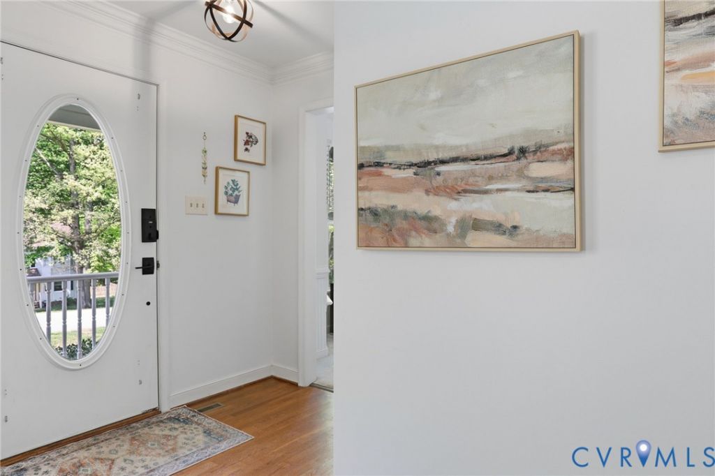 You'll love this Victorian transitional beauty! A charming wrap-around front porch greets you and is the perfect spot to enjoy your morning coffee. You'll instantly feel at home as you step into the open, happy, light-filled home. A spacious family room is anchored by a cozy brick fireplace and a large bay window. The bright kitchen is made for entertaining and offers ample counter space, a sunny eat-in area and direct access to a large composite party deck - perfect for indoor-outdoor living. The formal dining room is detailed with hardwood floors, crown molding, and wainscoting. It's an ideal space for a home office or playroom too. A rear staircase leads to 4 large bedrooms. Retreat to the primary suite to find another expansive bay window and a bath complete with a skylight, double vanity, and a tiled shower. There's abundant storage in the large closets, the attic and the attached garage. Trane AC unit installed in 2017. This dream home is in a friendly neighborhood, in a prime Midlothian location near top-tier schools, shopping and 288/76. Come fall in love!
