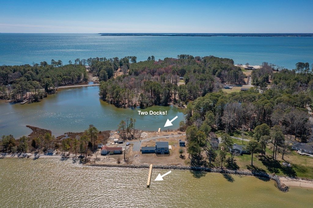 Incredible Chesapeake Bay views from this completely remodeled home in White Stone! This unique one acre parcel fronts both the mouth of Antipoison Creek and a small cove, offering water views from every room in this 3500 sq ft home. In addition to a renovated interior, this property boasts two docks installed in 2025, one to 2' MLW and one to 3.5' MLW. The home features a large kitchen with granite counters, subway tile backsplash and ample cabinetry. The main level also features a living/dining room with gas fireplace, two bedrooms - one ensuite - a second full bath, a second living room and a laundry closet. The upper level offers a huge primary suite with breathtaking views, a sitting/office area, a full bath and multiple closets to include a walk in. The second floor also includes two additional bedrooms and a full hall bath. Other renovations include new flooring, new roof, new septic in 2011 and 4 new heat pumps. This property is perfect for full time living, vacation stays or short term rental!