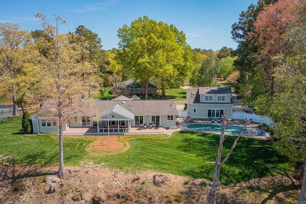 Waterfront home on 1.65 acres with 1,025' of shoreline on Moran Creek and views of the Corrotoman River. Features include 4â5' MLW, sandy beach area, protected dock with power/water, boat lift, 2025 floating dock with kayak launch and a waterside saltwater pool. The 2,949 sq. ft. main home offers a waterside living/dining room; kitchen with gas cooking, granite counters and center island; two ensuite bedrooms with walk-in closets and water views; study with wood-burning fireplace; family room with wet bar and 3-sided gas fireplace and waterside screened porch. A detached two-car garage includes a 1,354 sq. ft. guest house with a first floor waterside living room with gas fireplace, kitchen and full bath, two second-floor waterside bedrooms with bonus rooms and a full hall bath. Landscaped yard, garden shed, and stunning sunset views complete this exceptional waterfront offering!