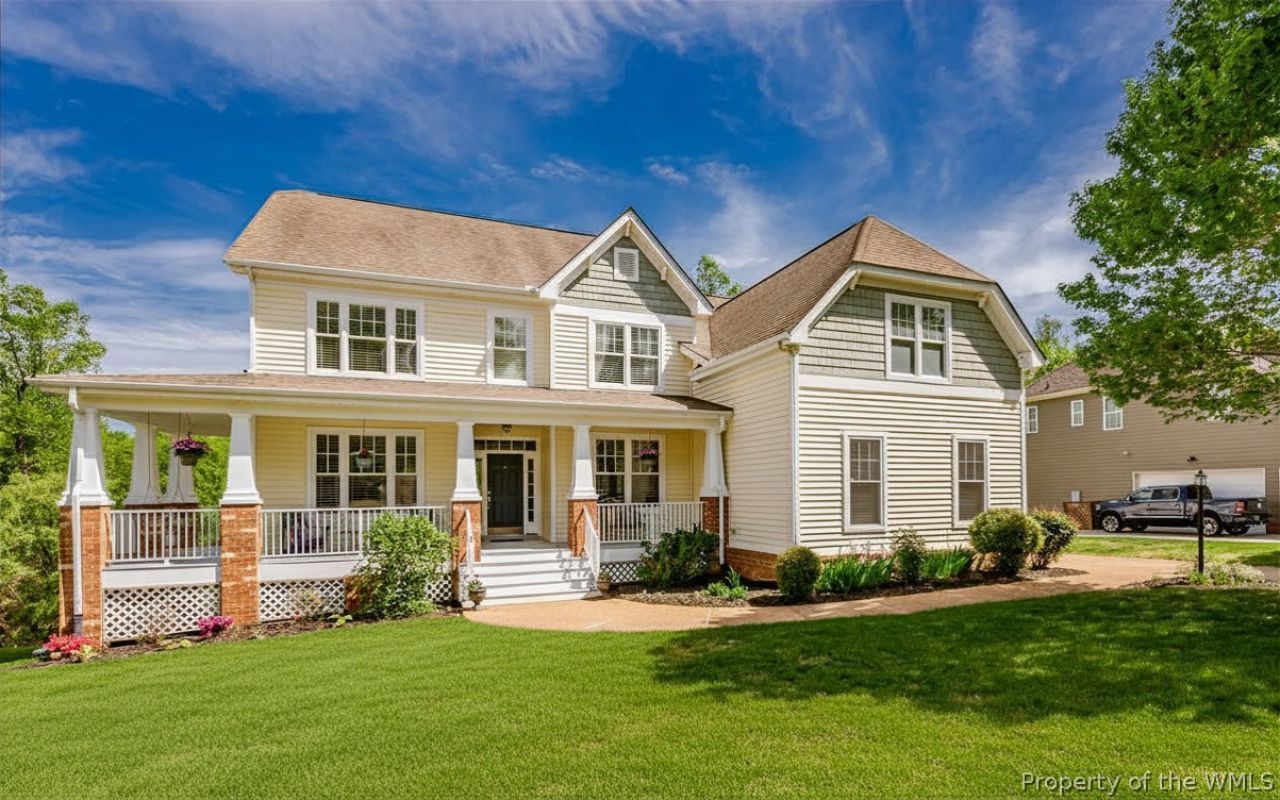This expansive 6-bedroom, 5 full bath home offers 4,357 sq ft on a .36-acre lot with lake views & exceptional indoor & outdoor living. The first floor features hardwood flooring & crown molding throughout main living areas, a welcoming foyer with coat closet, office, & formal dining room with chairrail & picture frame molding. The 2-story family room offers a gas fireplace with mantle & hearth & ceiling fan, opening to the eat-in kitchen & dining area with granite countertops, gas range, double oven, eat-up island, built-in desk, pantry, recessed lighting, refrigerator, dishwasher, & microwave. Bedroom with ceiling fan, carpet, & adjacent full bath with tub/shower & tile flooring completes the first floor. The second floor features the primary suite with ceiling fan, carpet, 2 walk-in closets, & private bath with corner garden tub, tiled shower, tile flooring, double vanity, water closet, & recessed lighting. 4 additional bedrooms with ceiling fans & carpet, 2 full baths with tub/shower & tile flooring, & a laundry room with washer, dryer, tile flooring & closet completes the second floor. The walk-out basement offers laminate flooring, crown molding, a large rec room with gas fireplace, recessed lighting, kitchenette with refrigerator & eat-up wraparound bar, additional room with ceiling fan & carpet, full bath with tub/shower & tile flooring, & mechanical room. 3rd floor walk-up attic provides even more storage. Exterior features include 3-car attached garage with EV charger, aggregate driveway, sidewalk, lamppost, vinyl siding, architectural shingles, gutters, wired for generator, thermal windows, landscaping, 2-zoned HVAC with gas furnace back up, & a gas tankless hot water heater. Enjoy the backyard oasis with a Trex deck with planter boxes and patio with outdoor fireplace & hot tub. Patriots Landing amenities include clubhouse, community pool, jogging path, playground, lake/pond, & dock. Conveniently located near winery, golf, restaurants, interstates, airport, & a short drive to Richmond & Williamsburg.