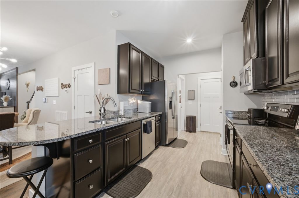 Beautifully maintained 3-bedroom, 2-bath home located in the highly desirable Grassfield school district. Built in 2018, this home offers almost 1,700 square feet of comfortable living space with a thoughtfully designed open-concept floor plan. The main living area seamlessly connects the kitchen, dining, and living spaces, creating an inviting layout ideal for both everyday living and entertaining. The kitchen features granite countertops, stainless steel appliances, and generous cabinet space, combining style and functionality. The first-floor primary suite offers convenience and privacy with a spacious walk-in closet and en-suite bath featuring a double vanity and seated shower. Upstairs you'll find two well-sized bedrooms and a full bath, providing flexibility for guests, family members, or a home office. Step outside to enjoy the fully fenced backyard with a spacious deck, perfect for relaxing, grilling, or hosting gatherings. A storage shed provides additional storage space for tools and outdoor equipment. Highlights include a two-car garage, modern finishes throughout, and access to community amenities such as a pool, clubhouse, marina access, docks, and beach area. Conveniently located near shopping, dining, parks, military bases, and major commuter routes, this home offers a wonderful balance of comfort, convenience, and lifestyle in Chesapeake.